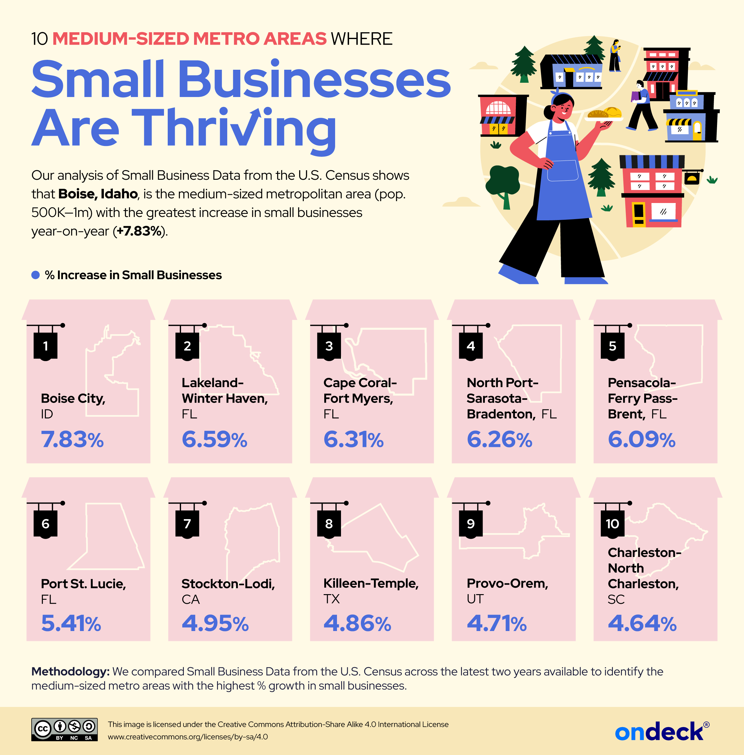 Infographic showing the medium-sized metro areas where small businesses are thriving